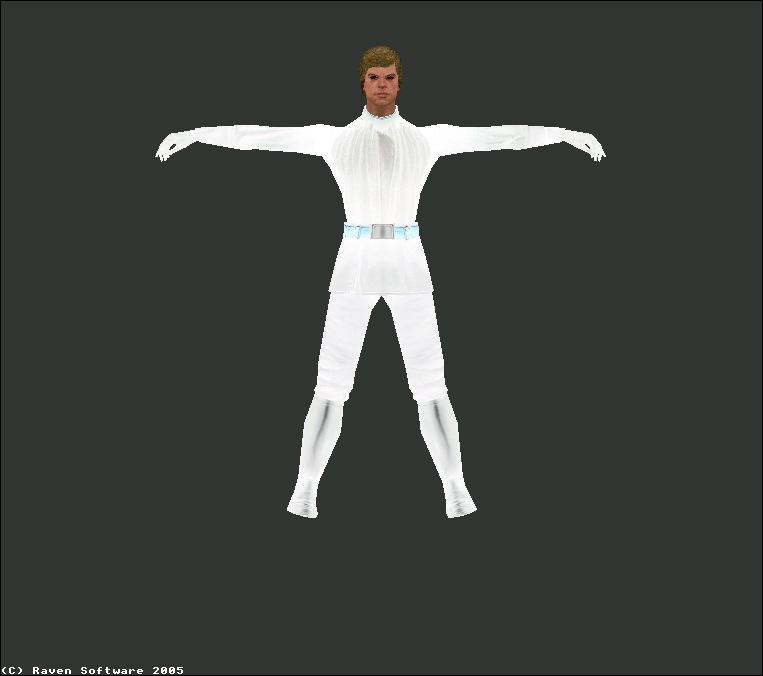 DESCRIPTION**: This is a Luke re-skin made for my clan, that I would like to make public. Luke�s original Skin is black as seen in Star Wars : Episode 6 Return of the Jedi . It was re-skinned to be white instead of black , also with some areas of light blue .