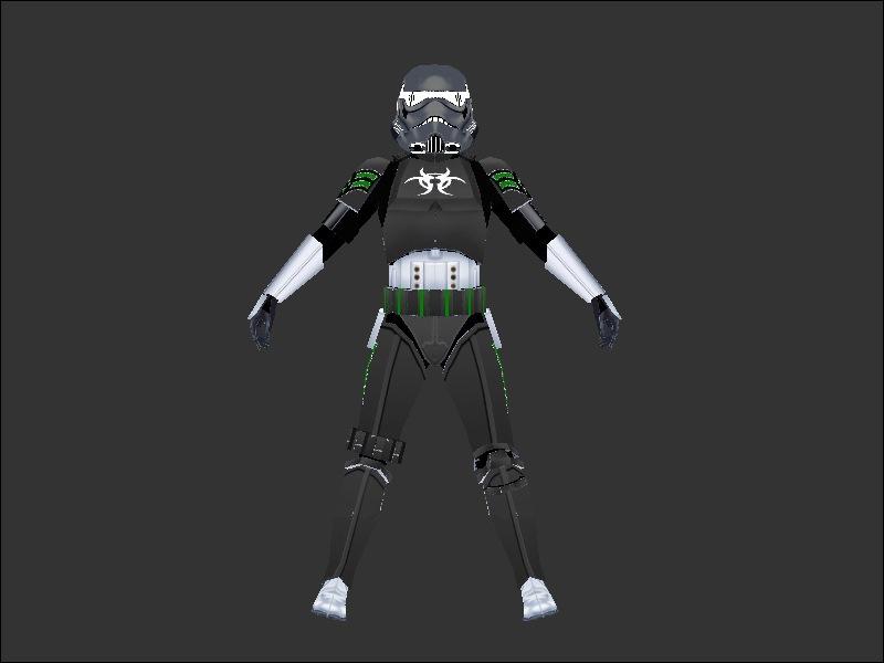 DESCRIPTION**: This is a reskin of the Stormtrooper. I don't have Photoshop, so I used Microsoft Word. It is a little sloppy because of this, please excuse that. This is also my first skin I've ever done, so thats another excuse if its bad, lol. Its a black and white trooper with a frickin awesome helmet. That pretty much sums it up.