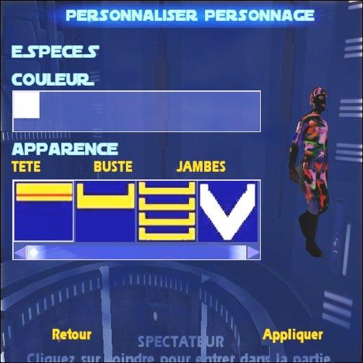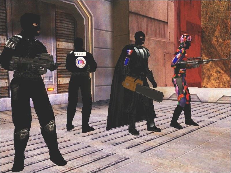 Comments : Here is the last uniforms skinpack I released... Why did I do this one ? Well, I read Forge's tutorial on http://www.jk3files.com/ and I learnt how to add skins to the Customize Character Menu. This was just so great : you'll probably read in the other readme files that it was needed to get special commands into the console. Now, you can select parts in the menu ! I didn't modify the Strings\...\MENUS.str files : at first because it would add 600 KB to the pack (If non-compressed and multilingual.) and secondly because it's not that difficult to do without it. The problem is that you will had to face a bug in the menu : to be able to select the new Species, RIGHT CLICK on the Species bar (I don't know why left click doesn't let the skins appear.) in the menu.