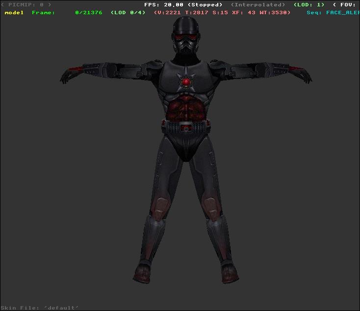COMMENTS: Well, I began trying to make some sort of evil person.... and because of lighting issues, he / she / it became a cyborg! Don't judge my too harshly.... I'm not colorbling, its just my first try :).... So why not enter a contest! PS: He is IN FACT a potatoe, he is just hiding in an old shadowtrooper suit. (And there really aren't many good potatoe models.... in basejka....)