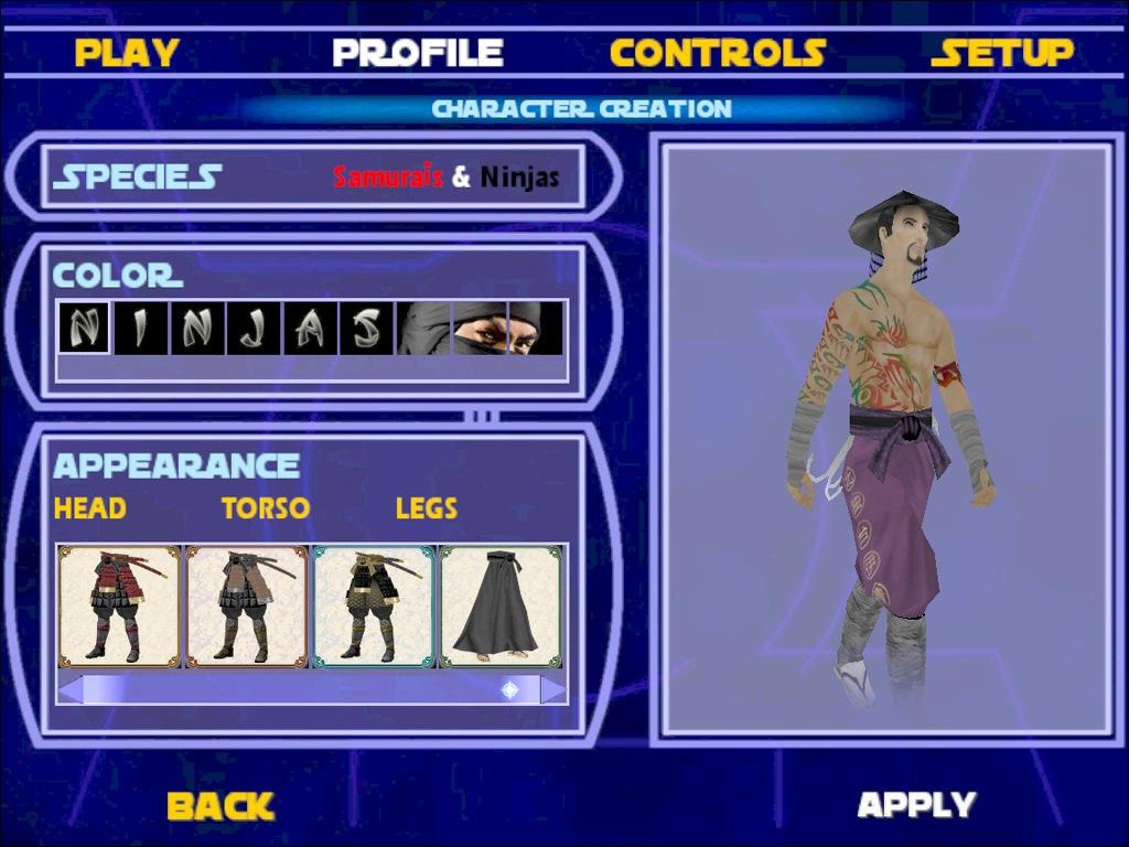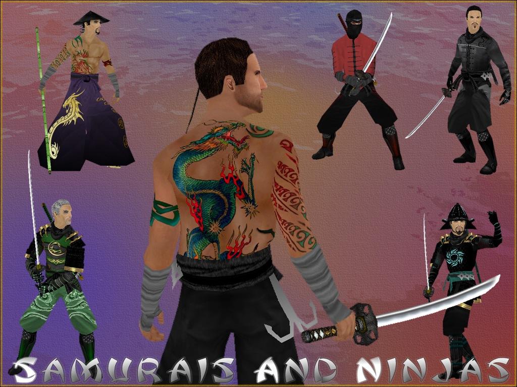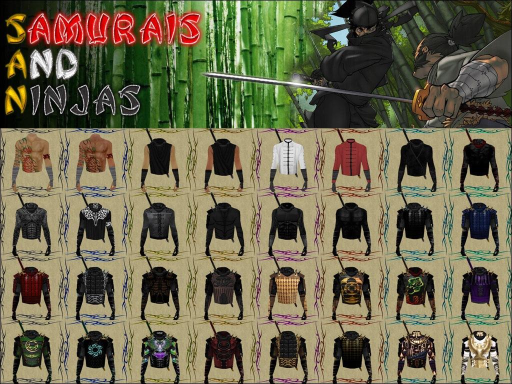 - In the torsos part, you can find different types of armours and clothes which can go well with both Samurai and Ninja styles. I have taken textures from base skins, and others like the original Samurai model or Tobe s Dracula, but finally, many textures come from me. I had a big pleasure in this part, making the naked tattooed torso or the eagle armour for example.