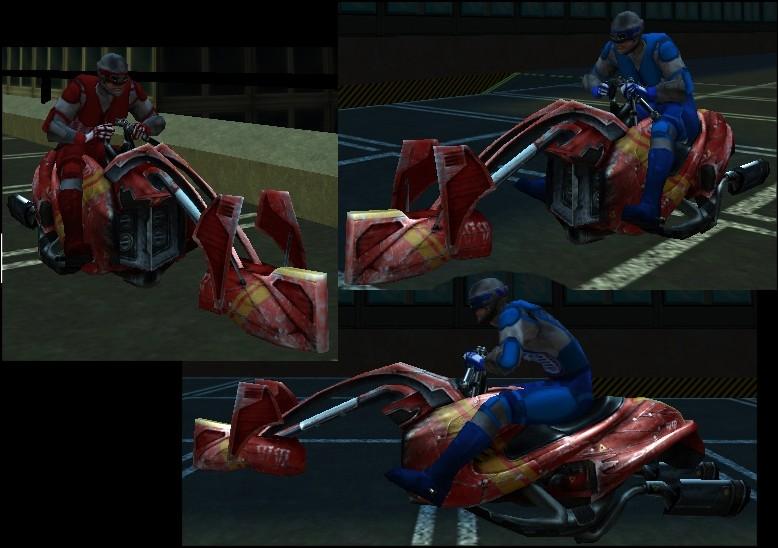 This is the Human Merc model. I was planing on useing this model to make a armor skin but then after starting the armor, it looked more and more like motor cross protection so i turned it into a Swoop Rider. There is a Red and Blue version in this pack. The only difference between the blue and normal, it is the cloth from his waist . This skin took me about 3 days to make( i was doing other things like studing for my exams). I hope to make a new version with bot support and new sounds if i find any that fit the skin.