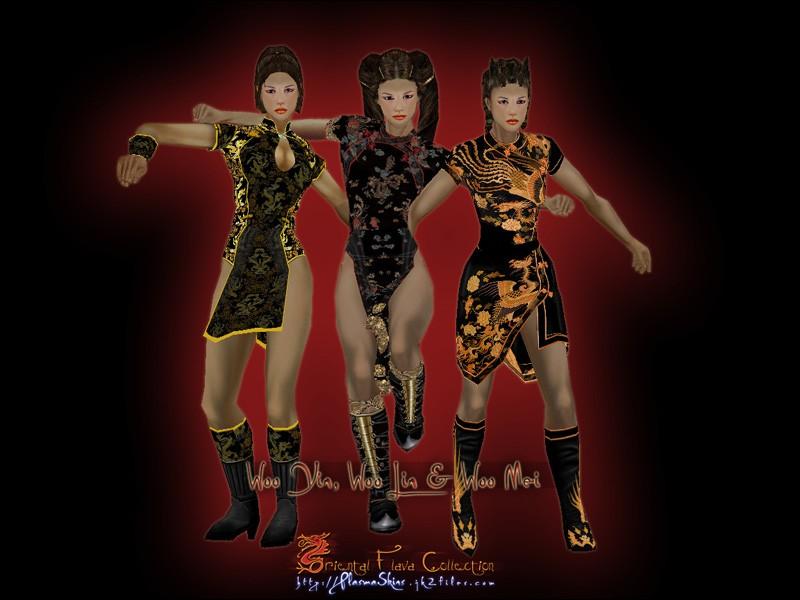 Skin Concept: Woo Lin in the first of 3 identical triplets based on an asian theme. The three sisters will have identical facial features and will be dressed in Asian-type clothing with both a dress and a more revealing version.
