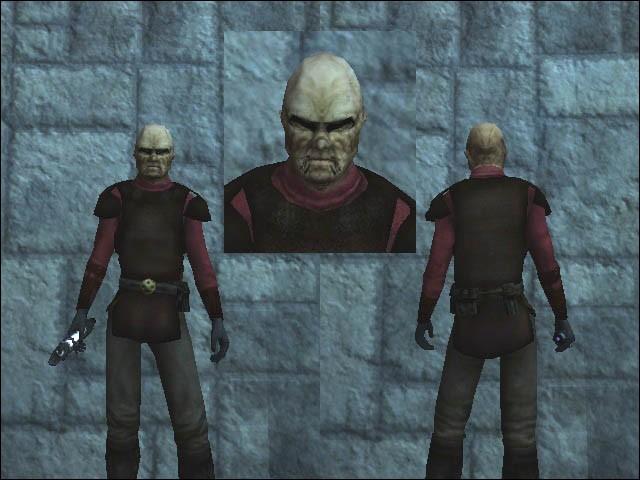 This was the weequay. Now he is bald like Jerec, with no stupid braid. :D He now has a leather strap over his eye. His mouth is tattooed. His clothes under the armor are maroon. So... i made it just for fun.
