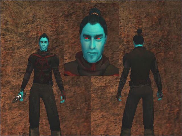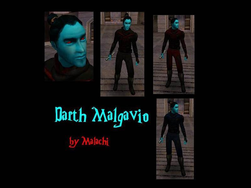 Story : A Chiss extremely powerful with the force was discovered on Malastare. No one knew where he came from. The jedi council ordered that he be trained in the jedi arts on Coruscant. He learned the ways of the jedi. After ten years, he left the order to return to his homeworld that he had never been to. Angered by the "pitiful" ways of his kind, he overthrew the king of the planet, and claimed the throne. He ruled as a tyrant and grew his hair long to show his power and individuality. Anyone who opposed him would feel the wrath of his slow and terrible Dark Force Kidney Thrust, a power he himself developed. Only one can stop Malgavio, but who? And when will he or she arrive to save the Chiss Homeworld?