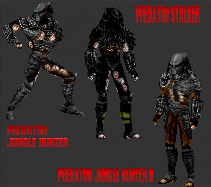 1, Celtic Predator (from avp) 2, City Hunter(from predator2) 4, Jungle Hunter(From predator) 5, Predator Stalker(Custom)