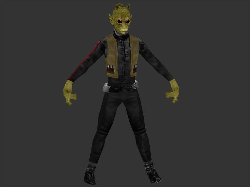 DESCRIPTION: I recently was playing jka and realized that there was only one type of enemy rodian. So, I decided to make another one. This has new facial textures, and a new uniform. I couldnt think of what to do with the vest, so very few textures where added there, they are hardly noticable anyways... This is my first skin with team colors, its about time i did one.