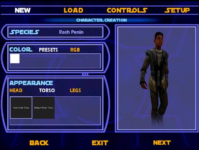 DESCRIPTION: This adds Rosh to the customizable SP character menu (Which is also in MP). It includes a black version of Rosh,