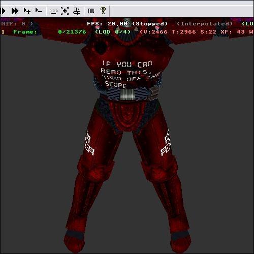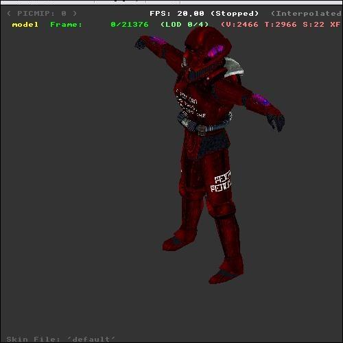 DESCRIPTION: My first skin, it is a swamptrooper with lamer hunter written in cool text on the sides, and the torso of the skin says "If you are reading this, please turn off the scope." This skin was mainly made for humor and to see what I could do with photoshop.
