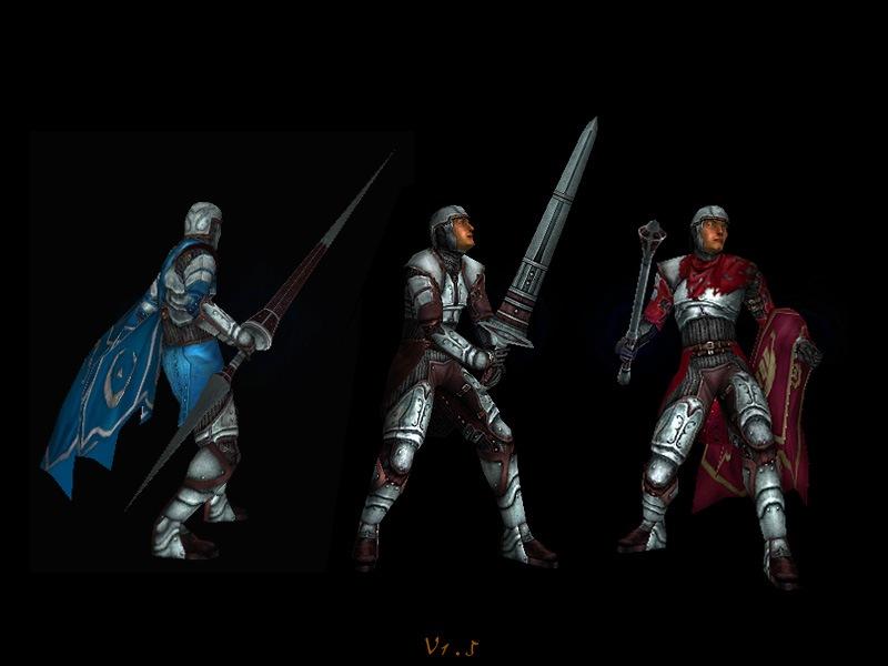 * New Weapons : 6 melee weapons for knights. All new models. Selectable from saber menu.
