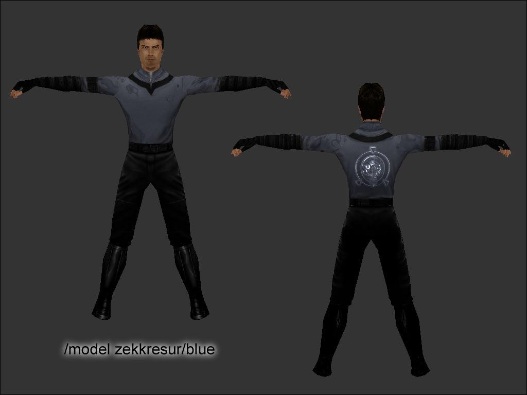 ( pour les francophones ) il faut taper " /model zekkresur " dans la console pour qu'il apparaisse, car il n'apparaitra pas dans le menu profil.