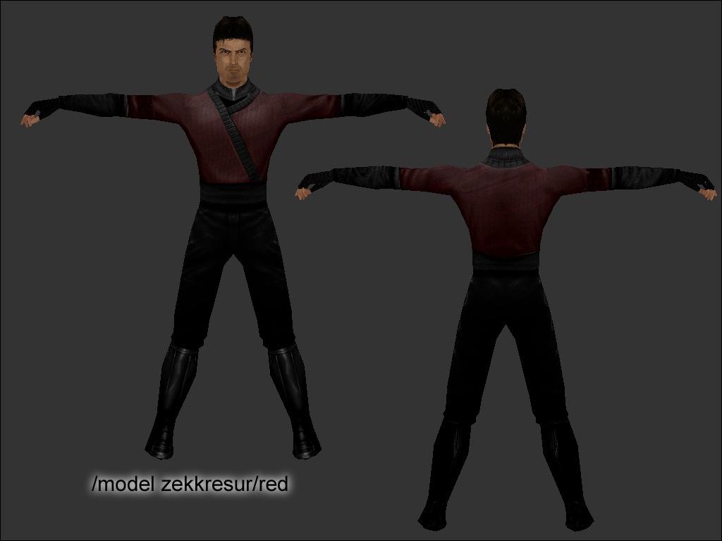 you must type " /model zekkresur " in the consol ( or /model zekkresur/red or blue )