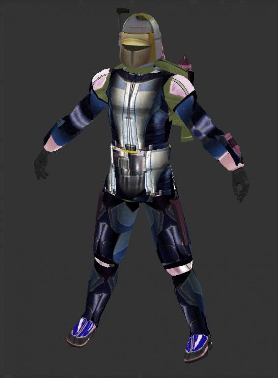 Description: : I edited his 'pink' jetpack to be blue, changed gauntlents to be mandalorian, made his face look like Bralor from KotOR 2 (hence 'braldor'), and even gave him new 'waist armor'. hope you like.