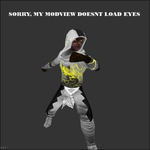 DESCRIPTION**: A neat white reborn reskin with black on some of the body and a wierd swirly thing on his chest and back. plus somethings on the sides of his hood and a golden scratch acrossed his eye.