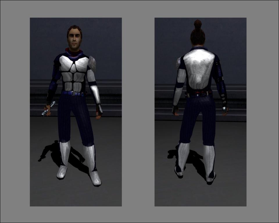 This was an idea I had a while ago before I knew anything about shaders and UV maps and such. Basically, Jedi in armour. :) I've seen it done by a few people on some other models but never before on the Jedi Trainer model, one which I always thought was open for much customization and yet I see very few mods of it.