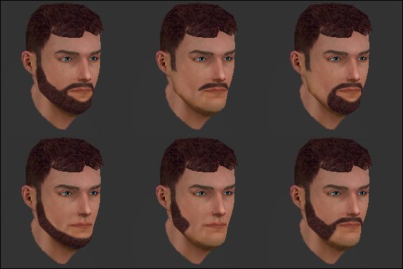 DESCRIPTION: Various facial hair combinations for Brown haired Jaden. Includes: Full Beard, Mustache, Goatee, Mutton Chops, Abe Lincoln, and Hugh Jackman's Wolverine.