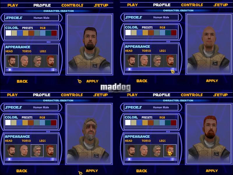 Skin: One brown haired Jedi with a full beard, a bald Jedi,
