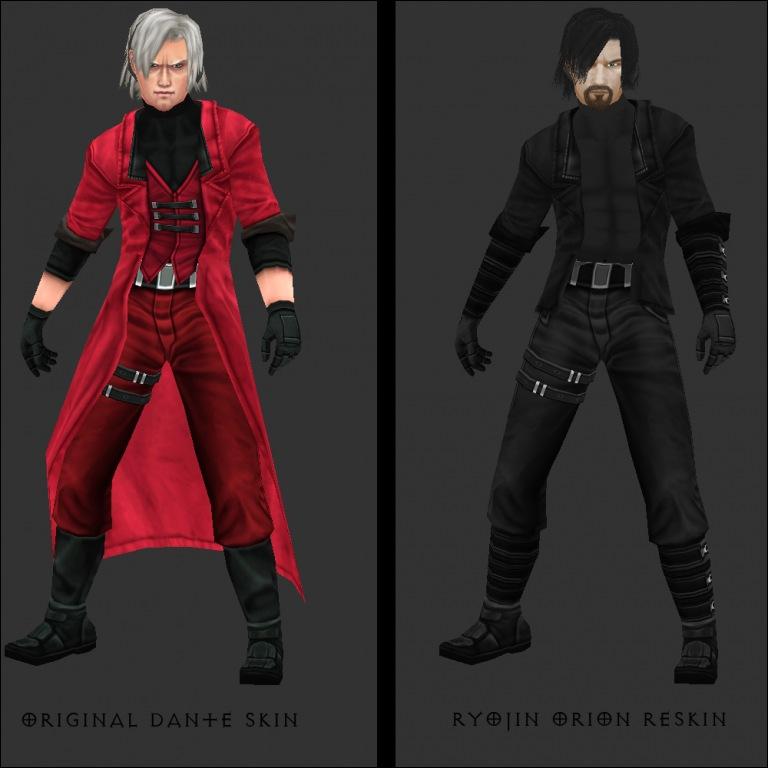 COMMENTS: Ryojin is a character based on my own imagination for a short story that I am writing. NPC/bot Support included.In version 3, I added in SP support, a new head with a Phoenix tatoo, got rid of that annoying sword on the back, and added in team skins. In version 5, I added in a few new faces, modified the existing faces, added in sounds, spent an hour banging my head against a wall trying to get the sounds to work, got the sounds to work, then added in multiple choices for pants. When it comes to the saber, it was my third attempt at a saber, and the best one I made out of the three. I thought it was good enough to use. It isnt too complicated, but not too simple, so I like it. For version 6, since I couldnt use the face I put on in V5 since I didnt have Graves' permission, and didnt want to wait, I went ahead and made a new face. The face is all mine. For version 7, I used Graves' Dante Reskin clothes, and edited them to what I wanted them to be, and I made new hair for it. A short haired version is also included. Version 8 mainly focuses on head variations. I took out all the scarred ones, since I never really liked them, but I added others to try to make up for it. Also, I finally made a half-decent short version of the coat.