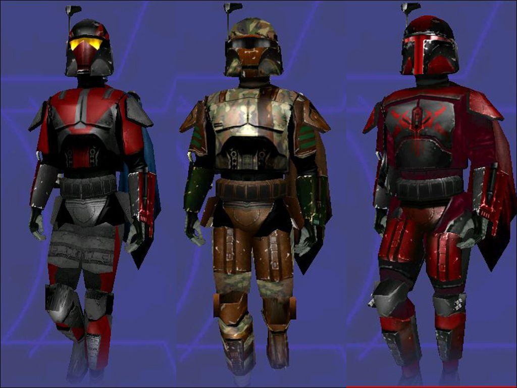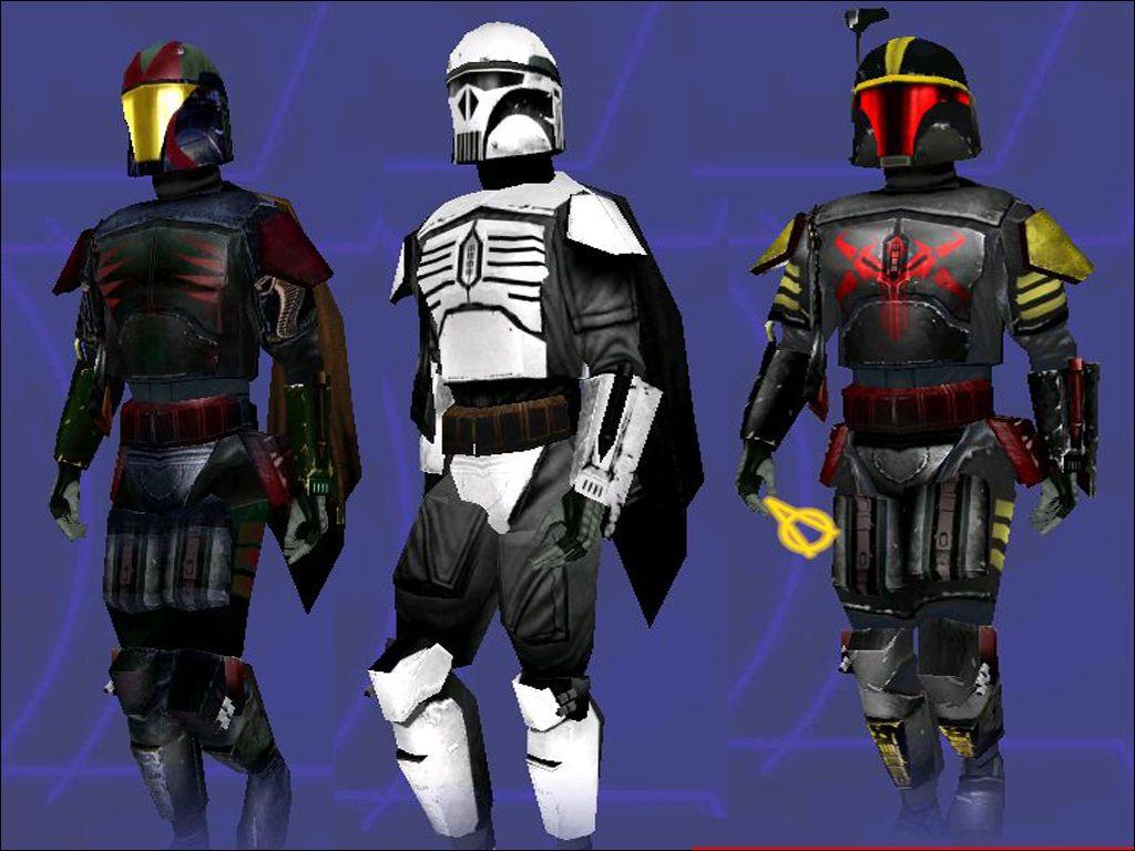 Description:New Updated version 3 .New and improved Mandolorians of the year 30ABY now includes brand new shaders and textures for Boba Fett and also includes Ghes_Orade(who is a bounty Hunter in 17aby up through the Vong Wars) and Jango Fett.Their are also 4 other new skins and many more new helmets to choose from.I have made new icons for all the helmet choices and new character
