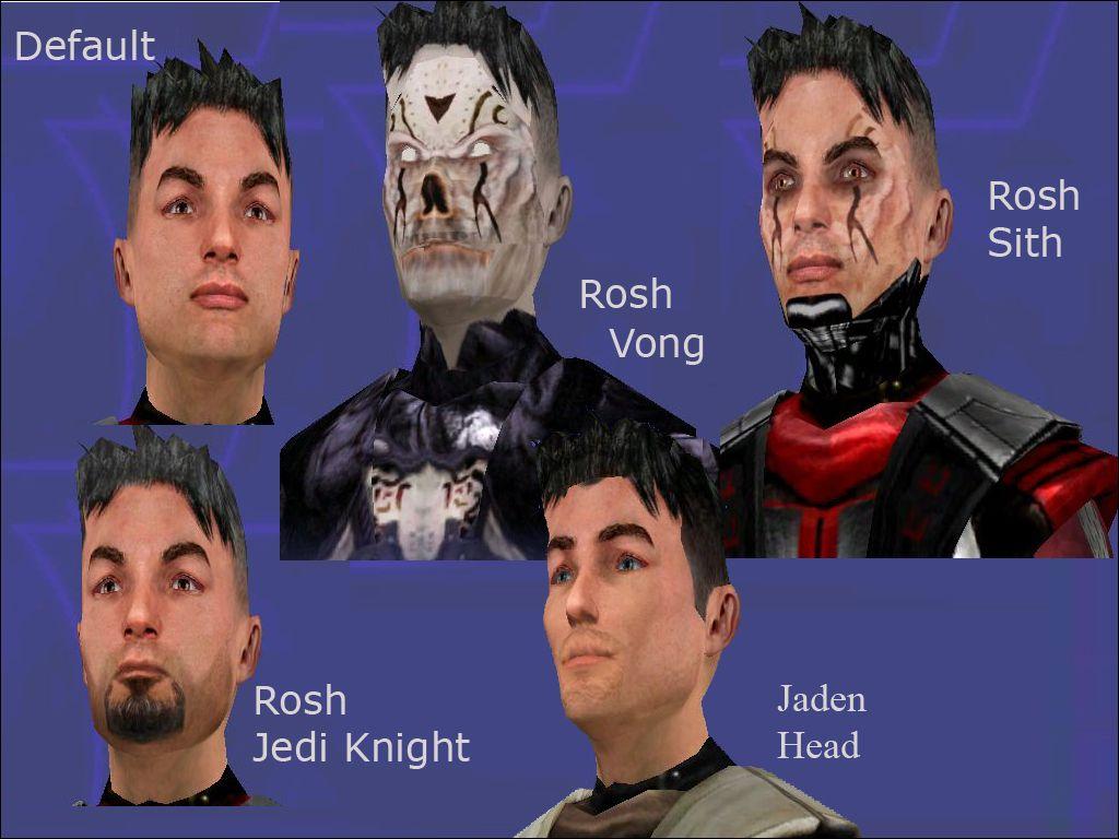 DESCRIPTION:I haven't submited in a while sorry guys.I have just gone back to school and I work fulltime.Anyway, here I give you a new improved Rosh complete with single player support and a few new bots to unleash your hatred of Rosh on.As for the bots go you have Jedi Knight Rosh,Jedi General Rosh ,who I imaged died very early on in the Vong war in a pointless death, Mercenary Rosh,Vongified Rosh ,because after all he is a idiot,and Sith Rosh who managed to survive being impaled by Jaden Korr with only his hatred and a cool new biosuit to keep him alive.But wait, thats not all you will also have a Jaden Korr head for single player so that your not talking to yourself through out the whole game,and the red light saber in single player too.In all the is seventeen new costumes to choose from."NOW!RELEASE your anger, only your Hatred can Destory me. "