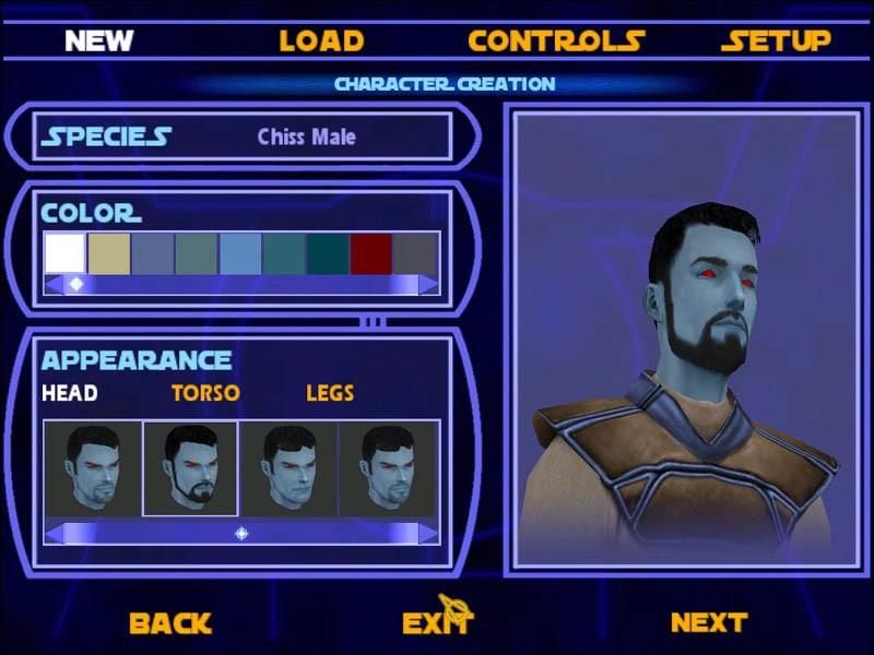 The base Chiss skins haven't changed, but I added some different custom color options. I added some extra skin files for lower sections of the other species. Some of the models use the same surfaces so I ported over some pants skins from one species to another. I also made the Hoth outfit selectable for all species.