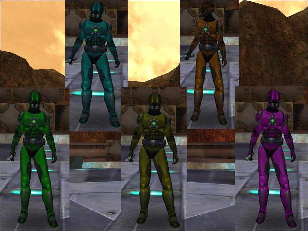 Description: This skin pack includes five different Shadowtroopers recolored in five different colors, Brown, Green,