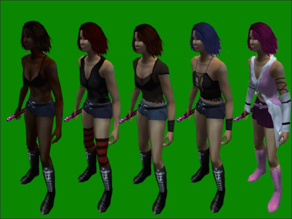 - Hope -> Pink shoes, Top and Belt, Purple/Pink Skirt and Hair