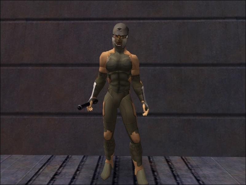Well this model was made by Darth Kitty and released with his Solid Skake Pack as a hidden character. As such, it had no sounds so i added some :). I also fixed up a few of the skins and added a few of my own, such as the bloody one that is missing an arm and the blue team skin. I also made it selectable in single player mode, but it is not fully customisable, each icon represents one full skin. Hopefully i will be able to add full sp support some time soon. I am also working on a pseudo Mr X (Olga in the Ninja suit from MGS2) for all the gals that wanna use this model both in MP and SP. I will also be ading new icons (the icon with the Real gray fox in the background and the model in the foreground is the new one) so that it is easier to figure out which model is which.