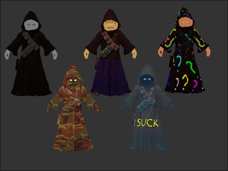 Sithjawa - after figuring out how to skin, i thought i needed a jawa that looked quite SinisteR for the clan name, so i created a Sith jawa. (this was origanly going to be the Leader of the mafia but that was changed)
