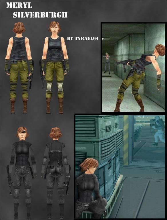 In any case, this is a comprehensive Metal Gear Solid 1 character pack, of all the major characters from that game: Solid Snake, Meryl Silverburgh, Revolver Ocelot, Vulcan Raven, Cyborg Ninja, Psycho Mantis, Sniper Wolf, Otacon, and Liquid Snake. Snake, Meryl and Ninja all have their "secret game-completion" costumes, too (Tuxedo Snake, Sneaking Suit Meryl, and Red Ninja). Furthermore, a few people on Hapslash's Void noted that they liked it when I plopped my textures onto Graves' Solid Snake v2, so I've included that in the pack as well, to let people sort out which Snake they like best.
