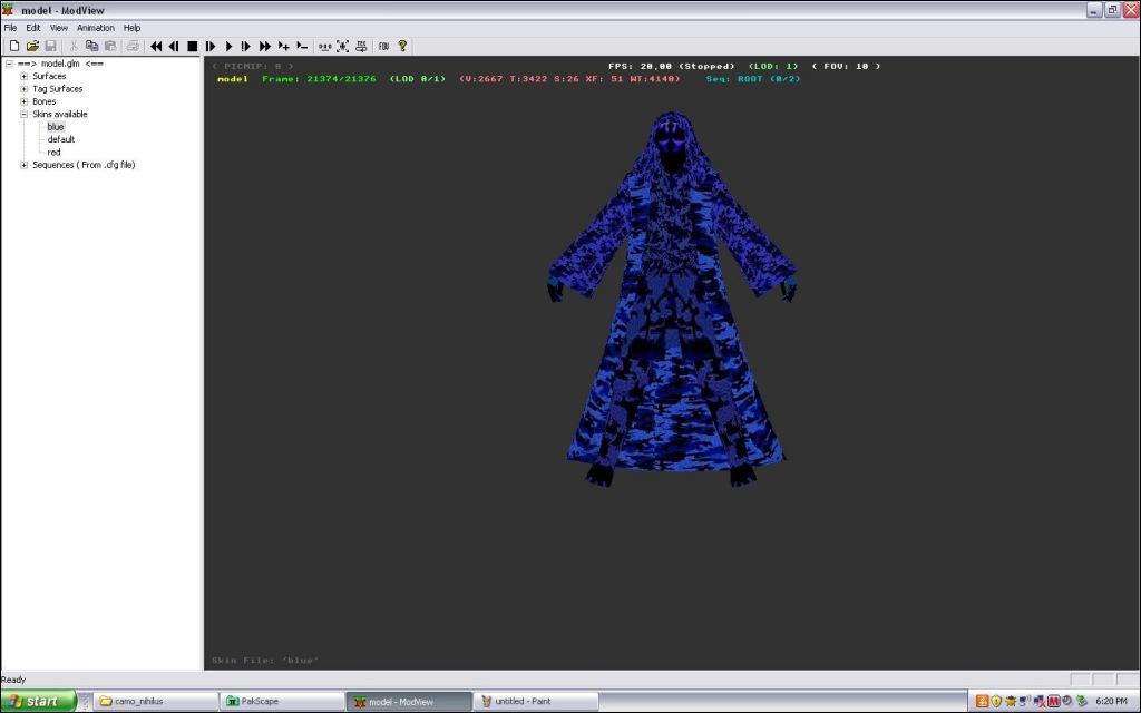 this is the skin of Darth Nihilus from KoTOR 2.I have reskinned the original model into a desert camoflouge robe. His face for default remains the same. red and blue camo for teams.