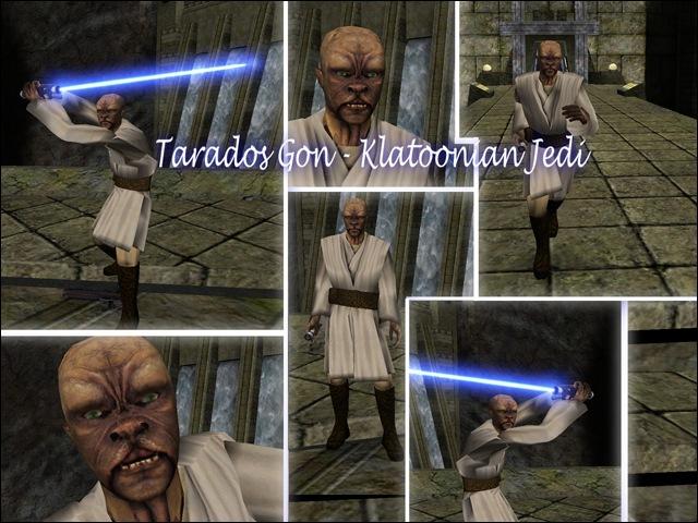 Tarados Gon was a Klatooinian Jedi Knight active during the waning years of the Galactic Republic. He was one of the 209 Jedi in the task force assembled by Mace Windu to rescue Obi-Wan Kenobi, Anakin Skywalker, and Padmé Amidala from Separatist forces on Geonosis. He managed to survive the battle in the Petranaki arena, although he perished when his rescue gunship was shot down.