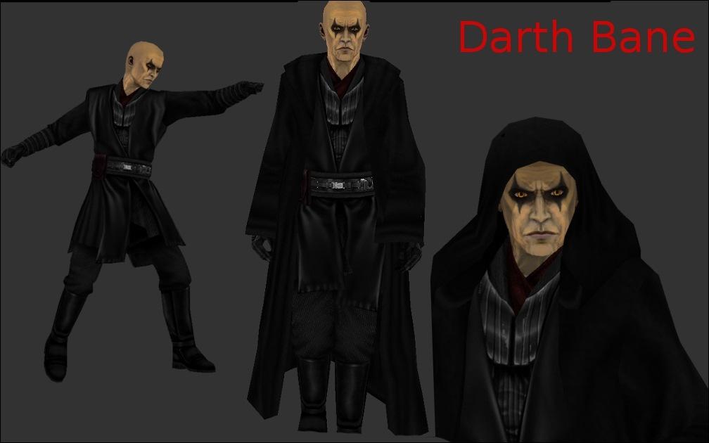 I used the Sith Spanki skin pack for awhile, and I wanted the Darth Bane skin to look more human like.