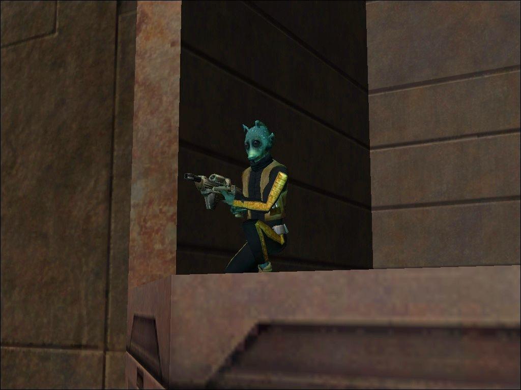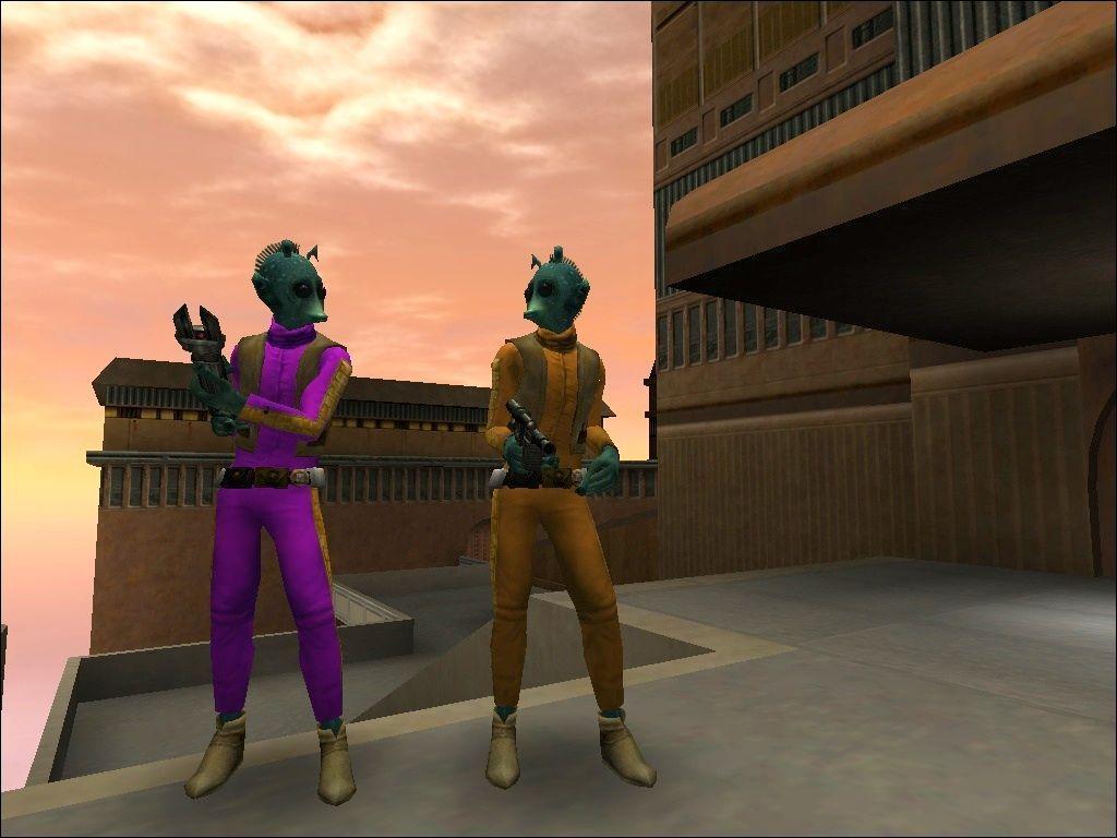 The inspiration for this skin was also RavenSoft. JKA includes two skins called "trandoshan/sp" and "weequay/sp" that work the same way this does. There was also supposed to be a skin called "rodian/sp", but for some reason the textures were never added. This file corrects that omission.