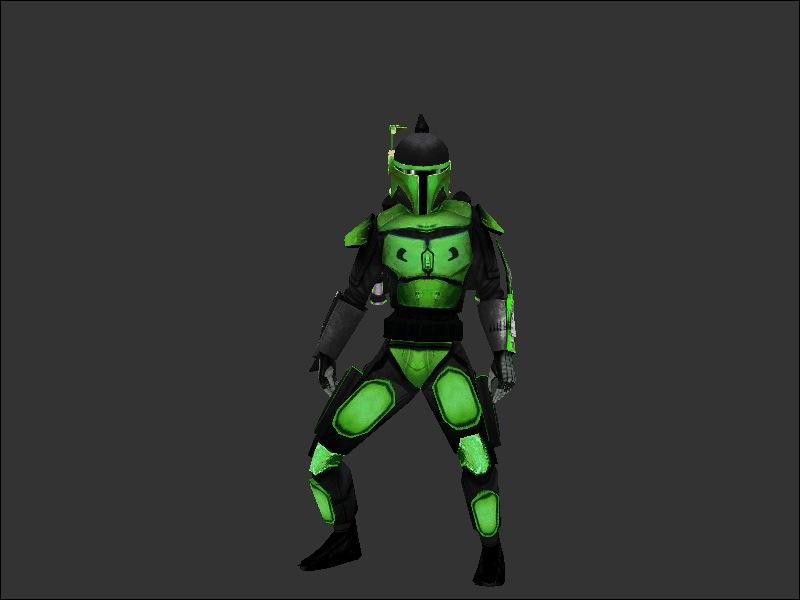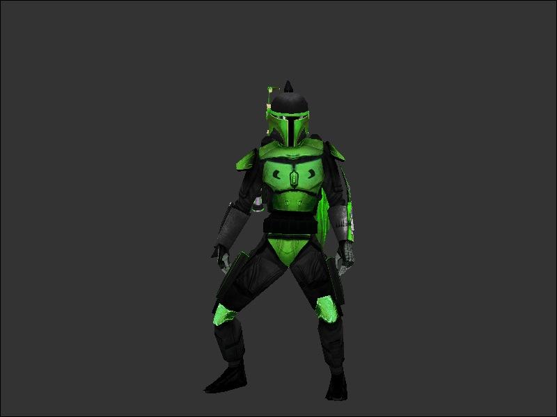 DESCRIPTION: A reskin of the Female Mandalorian model. Just made this in my spare time. Its a green and black Mandalorian. thats about it.