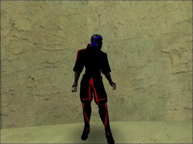DESCRIPTION: This is my first skin. It is mainly blak torso and head with a red stripe and red eyes.