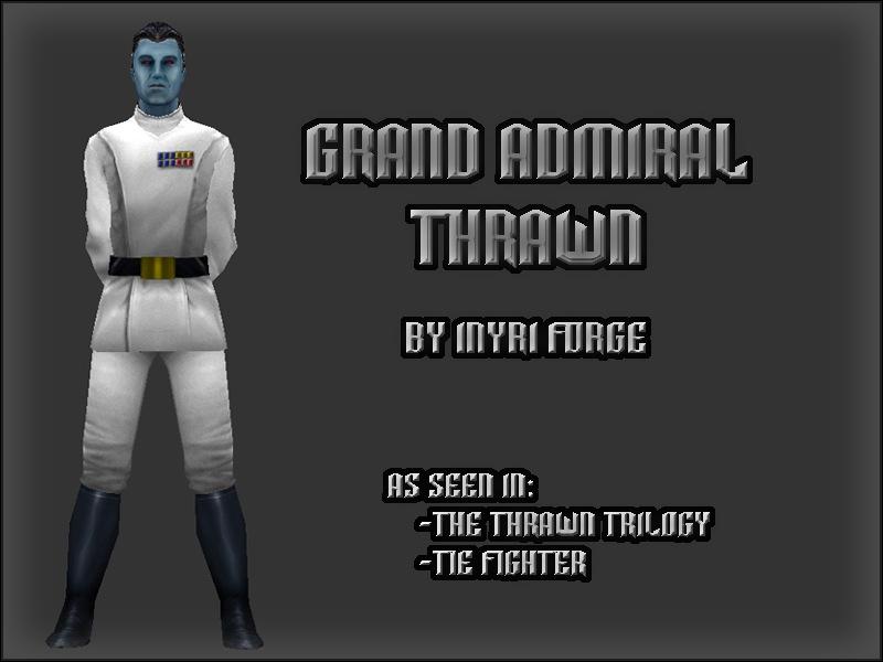 This is actually the second Thrawn skin I've made, but I'm happy enough with this one to release it. It is also the first successful face I've skined by hand. I feel like the community really needs a Thrawn skin that's not a dressed-up bartender, and I encourage anyone who is a Thrawn enthusiast (as I am) to try their hand at their own. Thrawn skins are actually very simple, unless you decide, as I did, that you want to give him a new face ;)