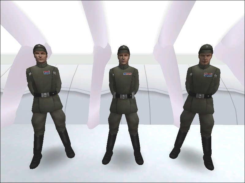 CREDITS: Hapslash for all the models and textures; and Infinity Blade for the mesh optimization, weighting, & conversion from Hapslash's "Improved Imperial Officer" mod (released 25th April 2005) for Jedi Outcast.