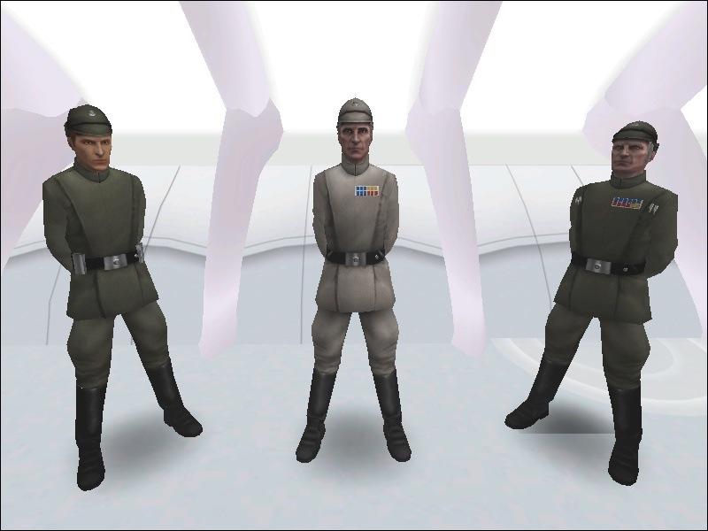 CREDITS: Hapslash for all the models and textures; and Infinity Blade for the mesh optimization, weighting, & conversion from Hapslash's "Improved Imperial Officer" mod (released 25th April 2005) for Jedi Outcast.