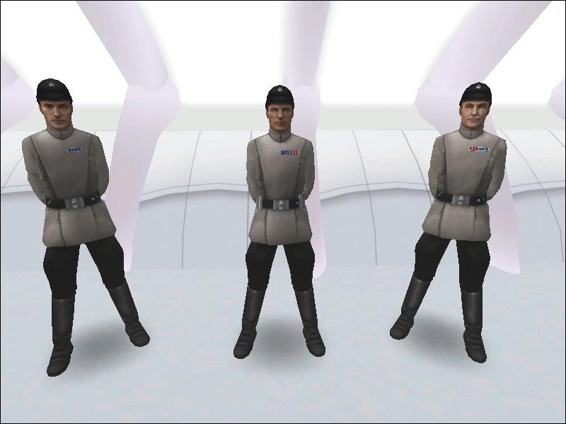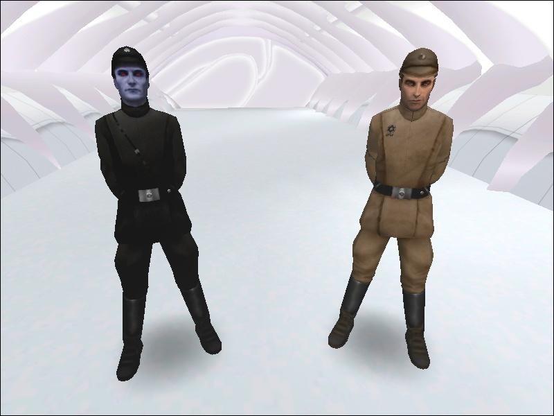 CREDITS: Hapslash for all the models and textures; and Infinity Blade for the mesh optimization, weighting, & conversion from Hapslash's "Improved Imperial Officer" mod (released 25th April 2005) for Jedi Outcast.