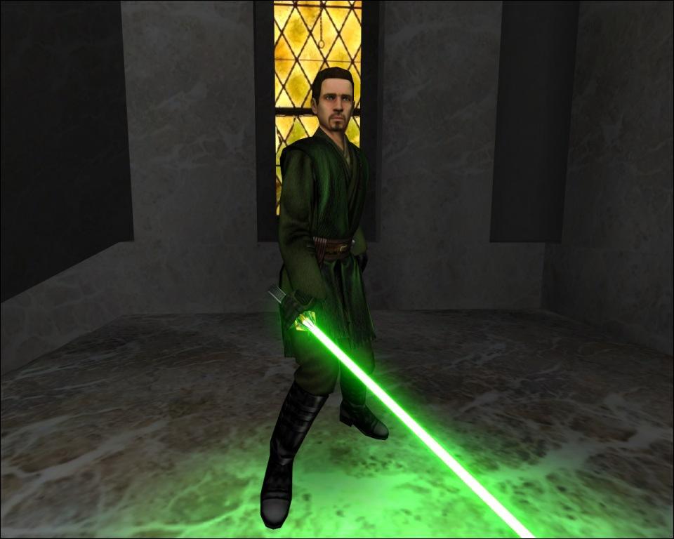 I basically took the Episode 2 Anakin and turned the robes a green-yellow hue. The Tabards are a light green (Default Model) and a Dark Green (DarkGreen Model) The boots are just straight black with an three straps instead of the regular two.