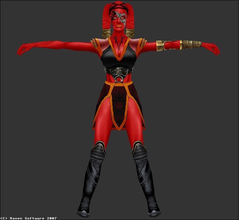 DESCRIPTION: This is a Twi`lek Jaden female reskin.It has some tattoo`s, a glowing baphometh on the back and glowing lips and eyes, to make it look more sithlike.