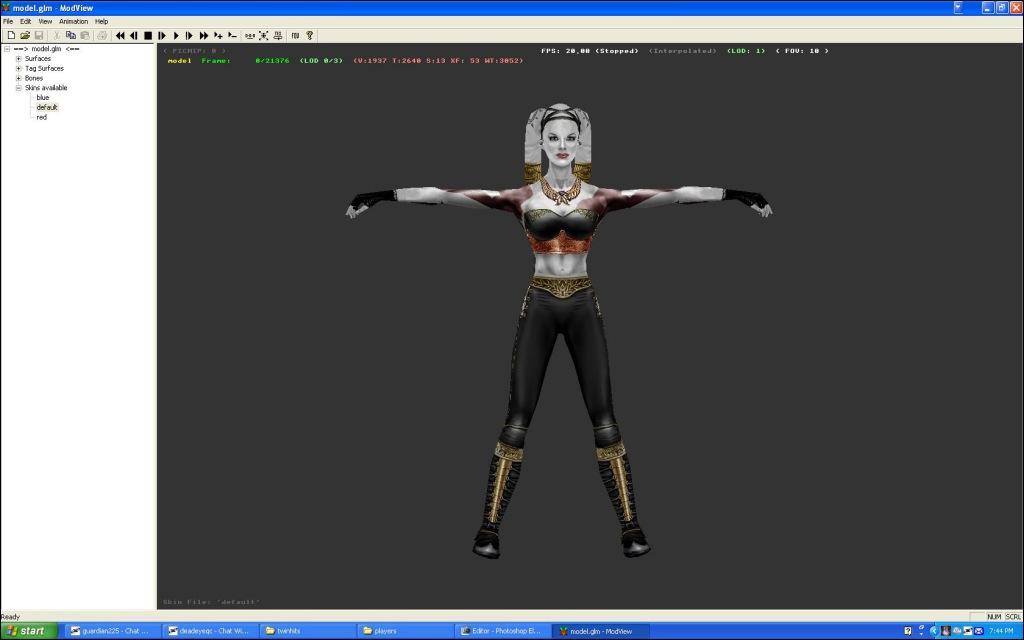 Contents: {TO}Jedi Master TwinHits's skin, a female Twi'lek reskin using orginial JKA textures. Background explained in "Explaining the Avatar" in the .zip.