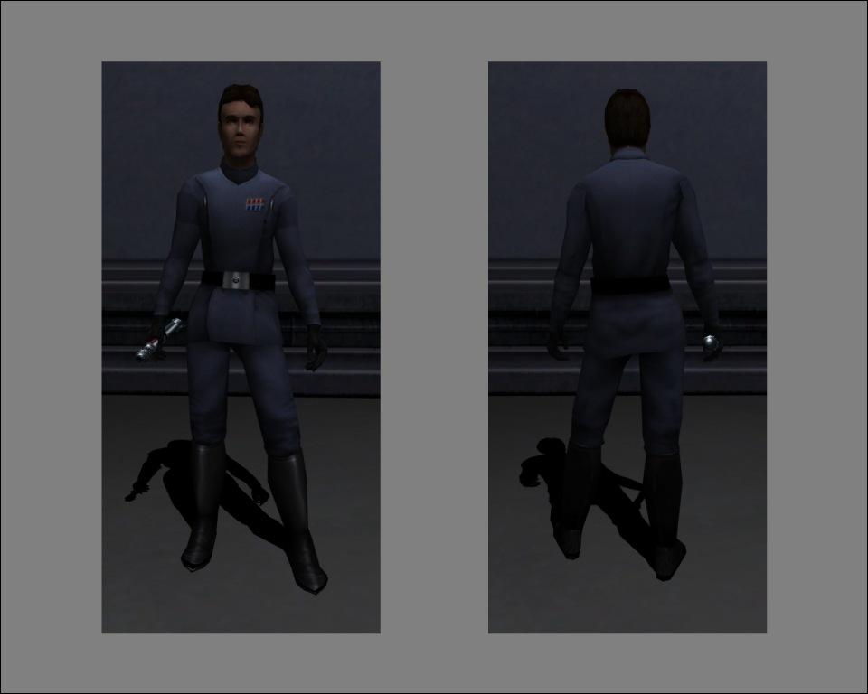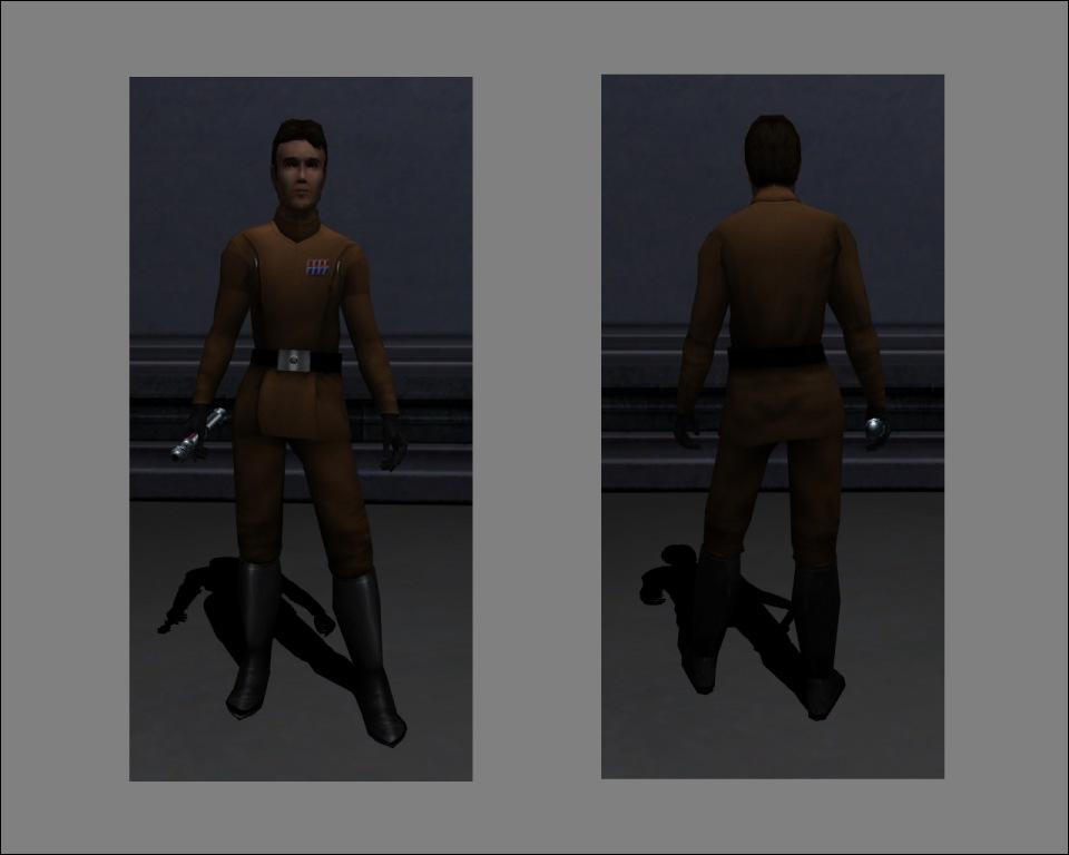 DESCRIPTION: Ok well I re-skined Ravan's Galak Fyar model and tried to make it look like a young Imperial officer called Kyle Katarn. You may know that Kyle wasn't always one of the good guys. He was at one time a loyal Imperial Officer. This is what he could of looked something like back then.