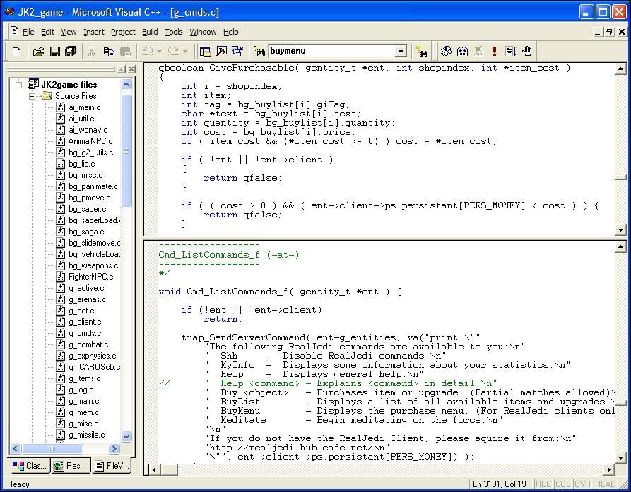 This is the latest source for RealJedi. All of my code is integrated into the original files in their proper places. I have thoroughly commented my code. 99% of modifications contain the string "(-at-)" in the comment to more easily find them. You will find that my style of coding exactly matches that of the original code in most cases. My code modifications are 100% my own, otherwise, proper credit is mentioned in the code.