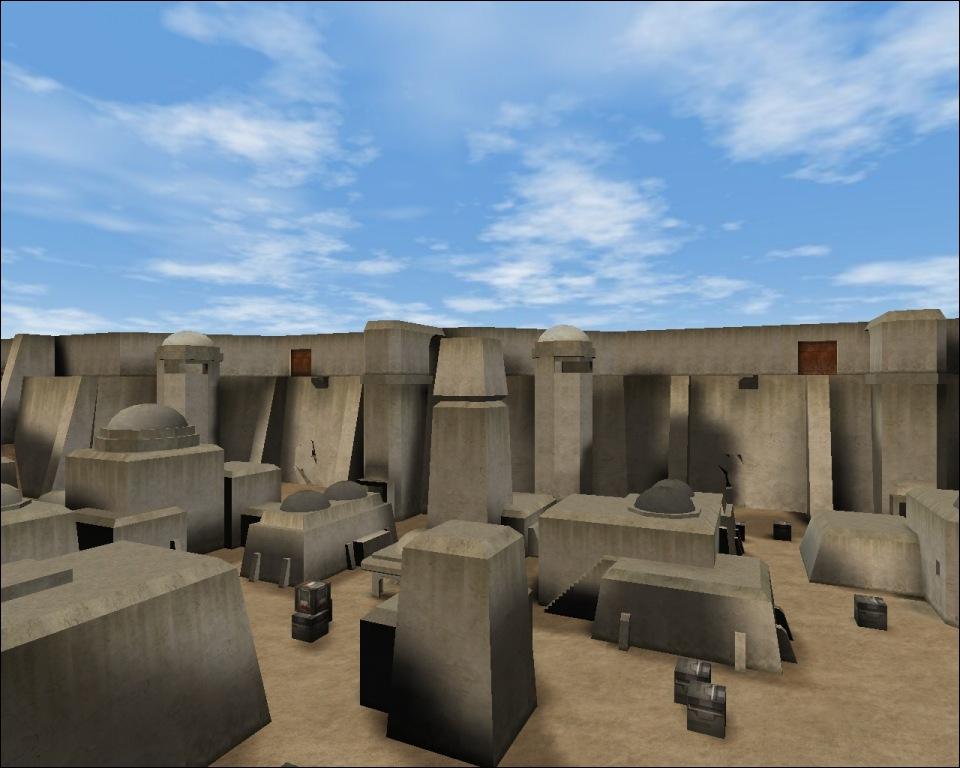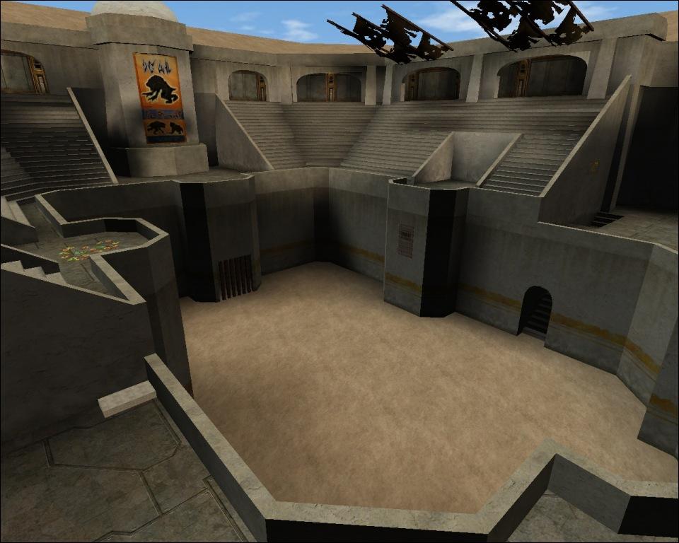 7. The arena. All the bars were deleted and respawned to be invinsible. The Rancor NPC was removed.