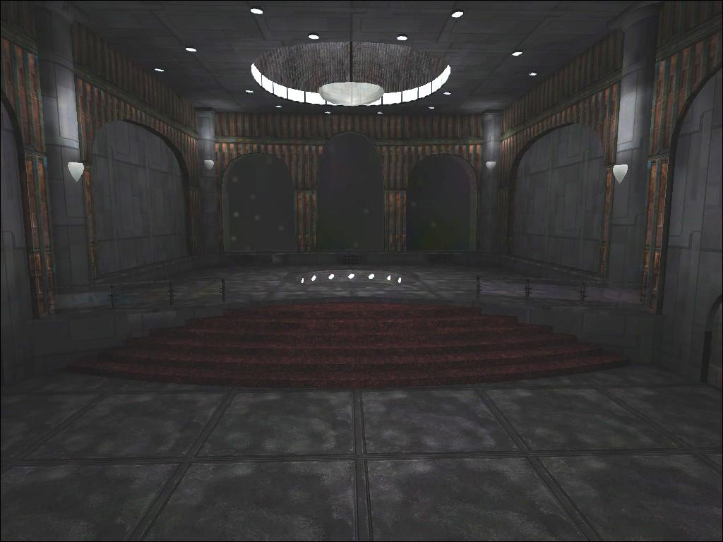 Description : Designed by Orkinnman, based off of an illustration of a Jacuzzi tub bathroom and extremely expanded upon. Ample room to duel, not quite enough to encourage running away, and a beautiful design make this map a joy to play in. Mess around with it, you'll find that the design contains many more tactical advantages than one would think.