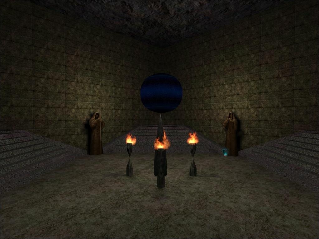 Description: Please note, before you go trying to tear my map to pieces in reviews, this is only my first publicly released map. I wanted to make just a simple duel map. So I did. The centerpiece is an ancient globe of some unknown rock balanced precariously on top of a cone. It is surrounded by 4 torches. Beware of the fire! It can suck your life away in less than 10 seconds.