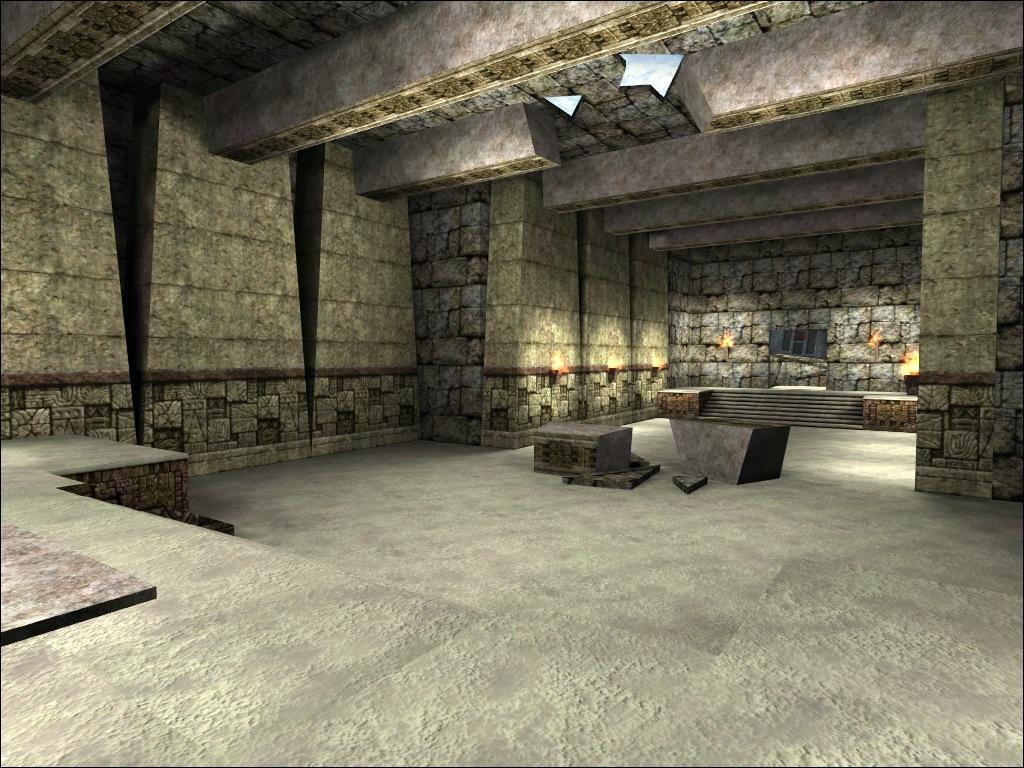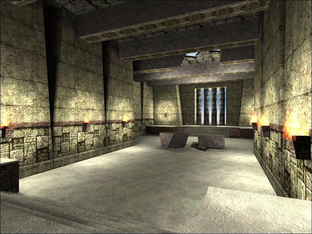 Map description : This map is a non-exact replica of Luke's quarters at the Massassi Temple on Yavin IV, from Jedi Outcast. It's a wide level, with an excellent space either for "only saber" or "full forces" duels due to it's large plain spaces, clearly divided by the rocks which can be very useful for hiding in ff duels.