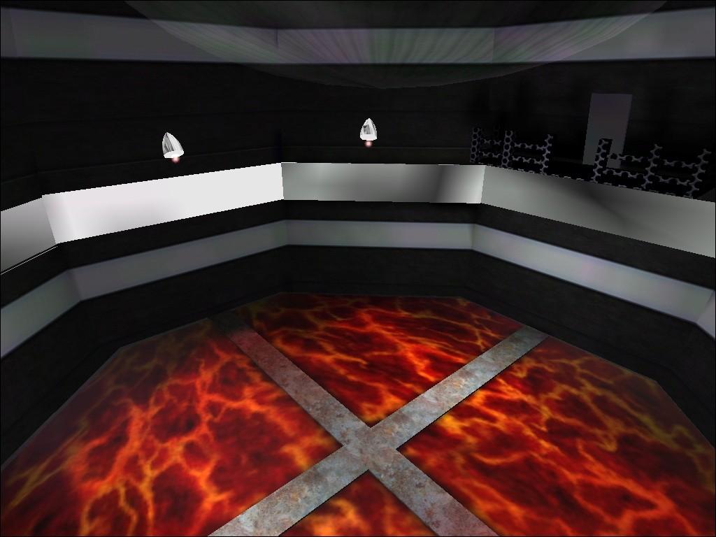 1st Left Door: Unnamed's Nameless Arena: Lava pit with duel arena, and flare lights